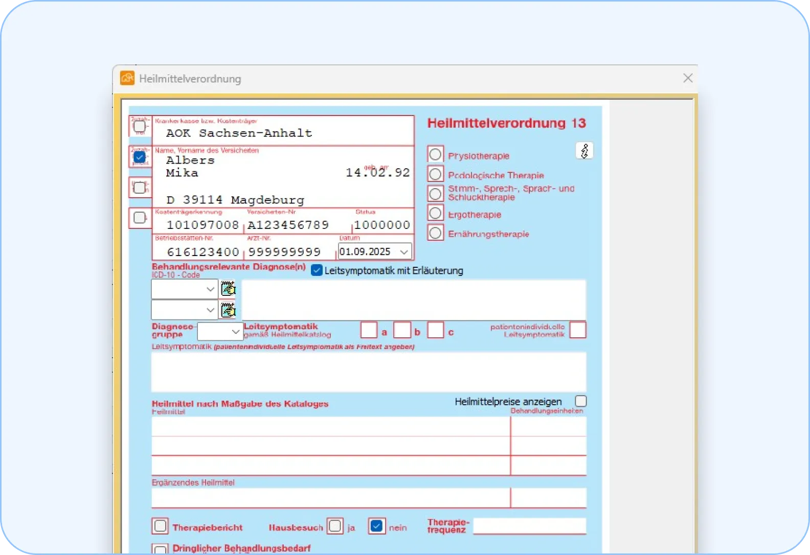 Verordnen Sie einfach Ergotherapie in dem dafür vorgesehen Muster 13. Weitere Heilmittel können bei entsprechender Berechtigung verodnet werden.