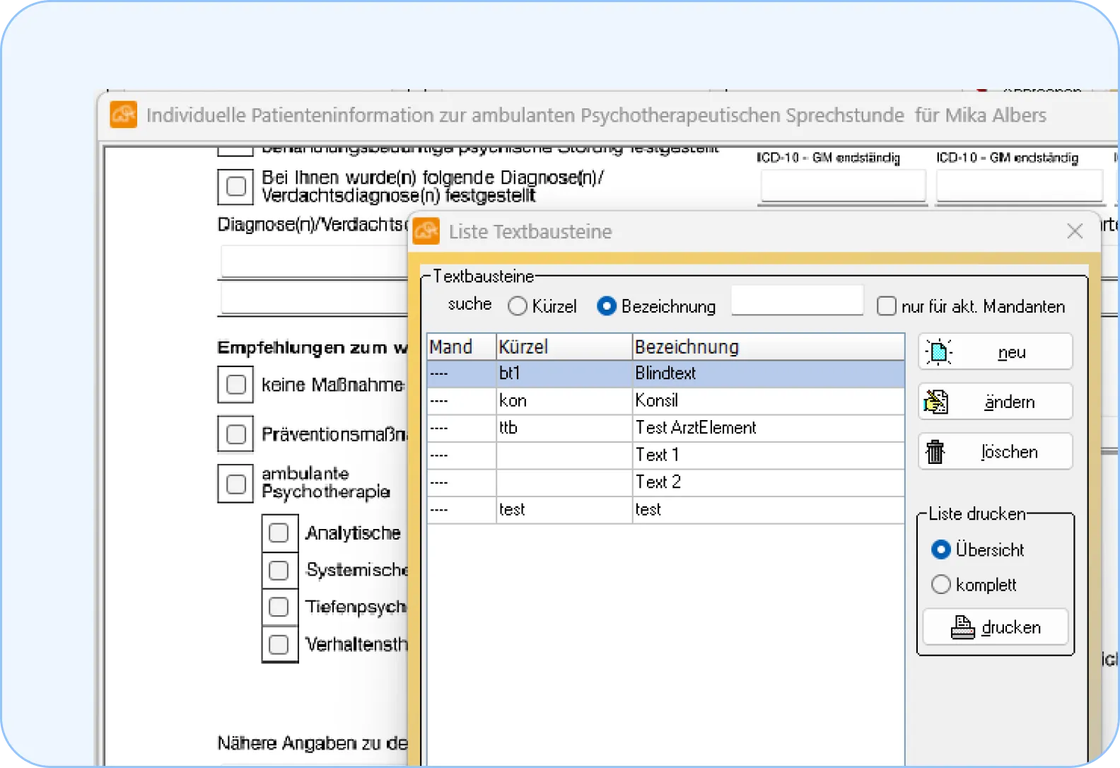 Erstellen Sie individuelle Textbausteine für Briefe, Gutachten oder Formulare, die jederzeit griffbereit sind. So sparen Sie wertvolle Zeit im Praxisalltag.